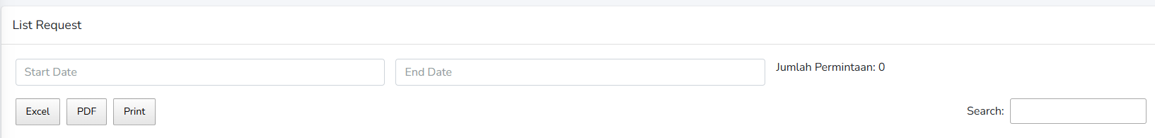 Setelah Anda login dan masuk ke dalam Dashboard akun Anda, Anda akan melihat menu Request yang terletak di sisi kiri halaman dashboard. Klik tombol Request untuk masuk ke halaman list request.